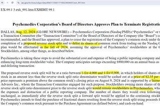 Psychemedics Corp's proposed reverse stock split and delisting at $2.35 per share