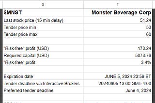 Monster Beverage Corp $MNST - tender deadline 5 June 2024