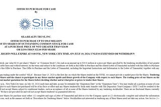 Sila Realty Trust, Inc - $SILA odd lot tender offer - tender deadline 19 July 2024
